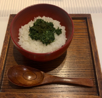 After drinking the tea, we dry the tea leaves and mix them into the rice balls with a sprinkle of Amakusa salt.
